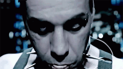 The first song and title track, Sehnsucht ("Desire"/"Longing") has a simple but brilliant layering to it that tells you exactly where it's from, even before Til starts singing. The track / album starts off with a processed, yodeling sample on a loop, followed by synthesizers setting the tempo. TAT TAT TAT The drums and guitar drop, kicking the song into a mid-tempo groove, so catchy you wanna head bang around all the heavy machinery here in this German Warehouse you now find yourself in. The judicious use of the synths and samples balances well with the louder parts of the song to create a bouncy, fun, foot stomper.
